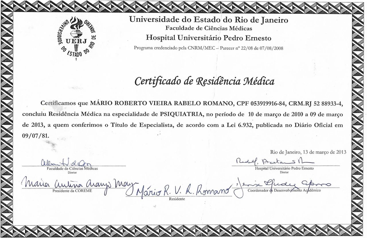 Gostaria de expressar meu reconhecimento ao Dr Mário Romano, pela dedicação, sensibilidade, escuta qualificada e competência técnica demonstradas no cuidado com o paciente.