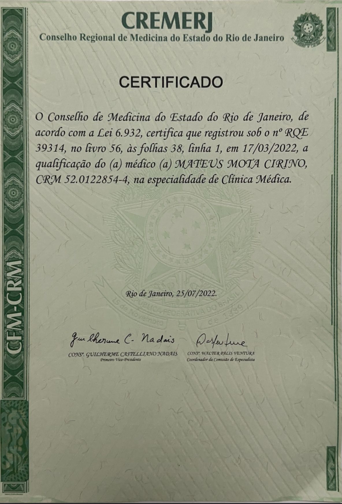 A especialização em Endocrinologia e Metabologia foi concluída no renomado Hospital Federal da Lagoa (HFL), no Rio de Janeiro, centro de referência nacional na área. Sou especialista com registro RQE 18462 e 39314, dedicando-me integralmente a esta especialidade com ética e fundamentação científica.