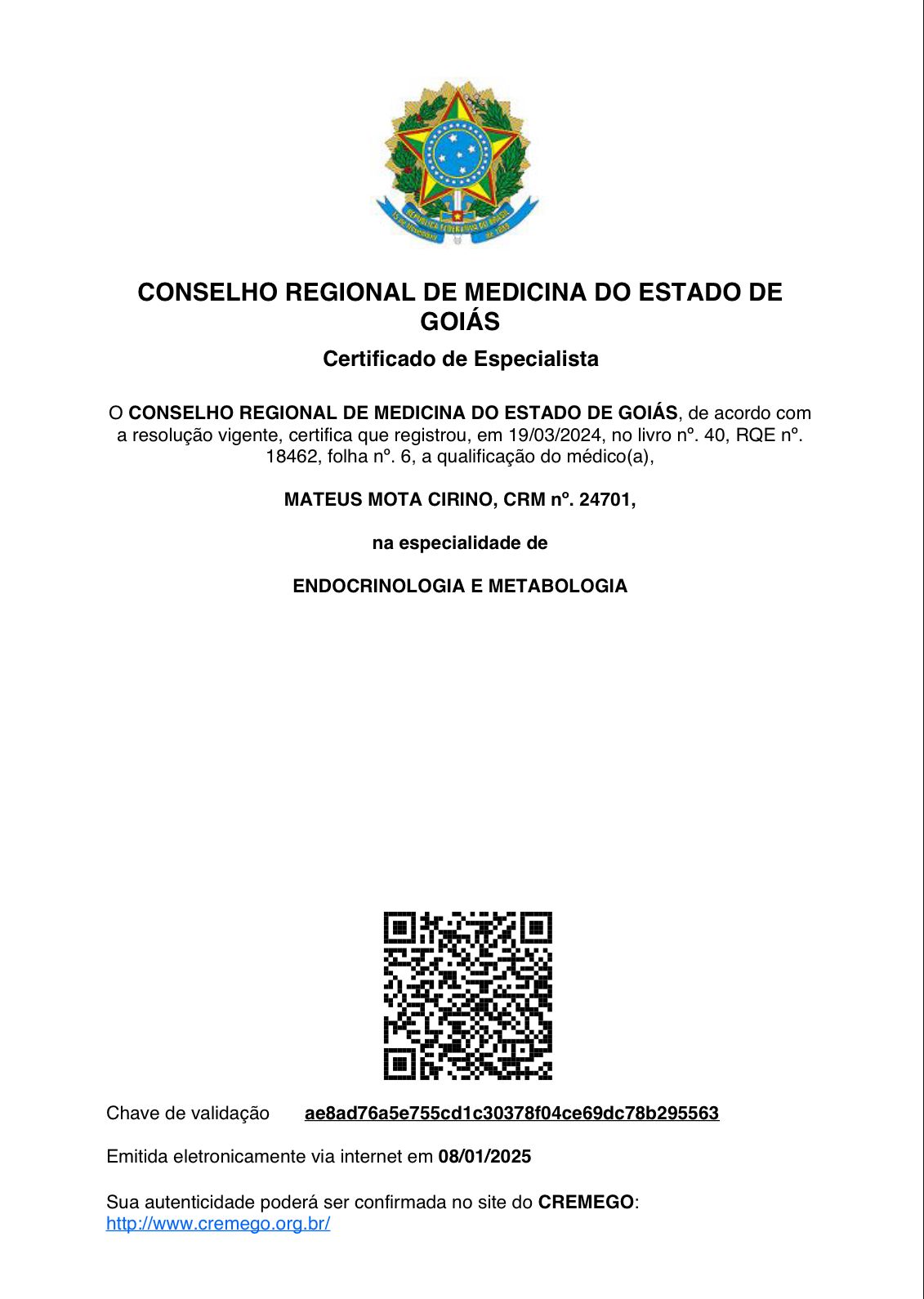 Número de registro: CRM GO 24701 RQE Nº: 18462