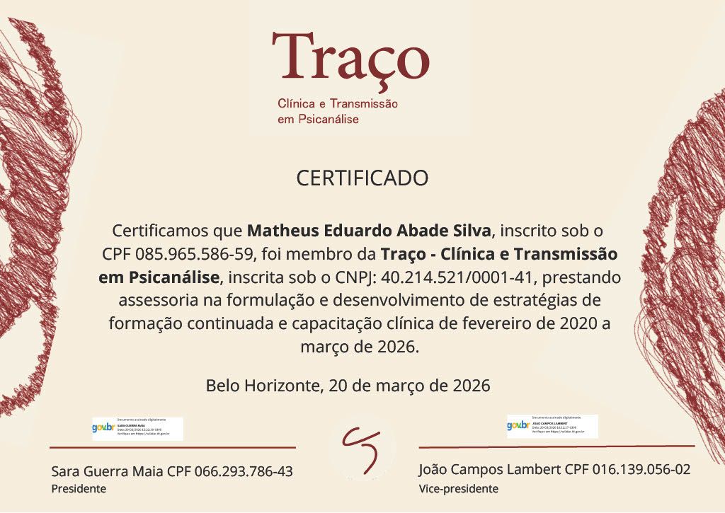 Analista praticante da psicanálise de orientação lacaniana. Mestre em Estudos Psicanalíticos pela Universidade Federal de Minas Gerais/2024. Com o tema da Coragem como uma possível cura para a Depressão.