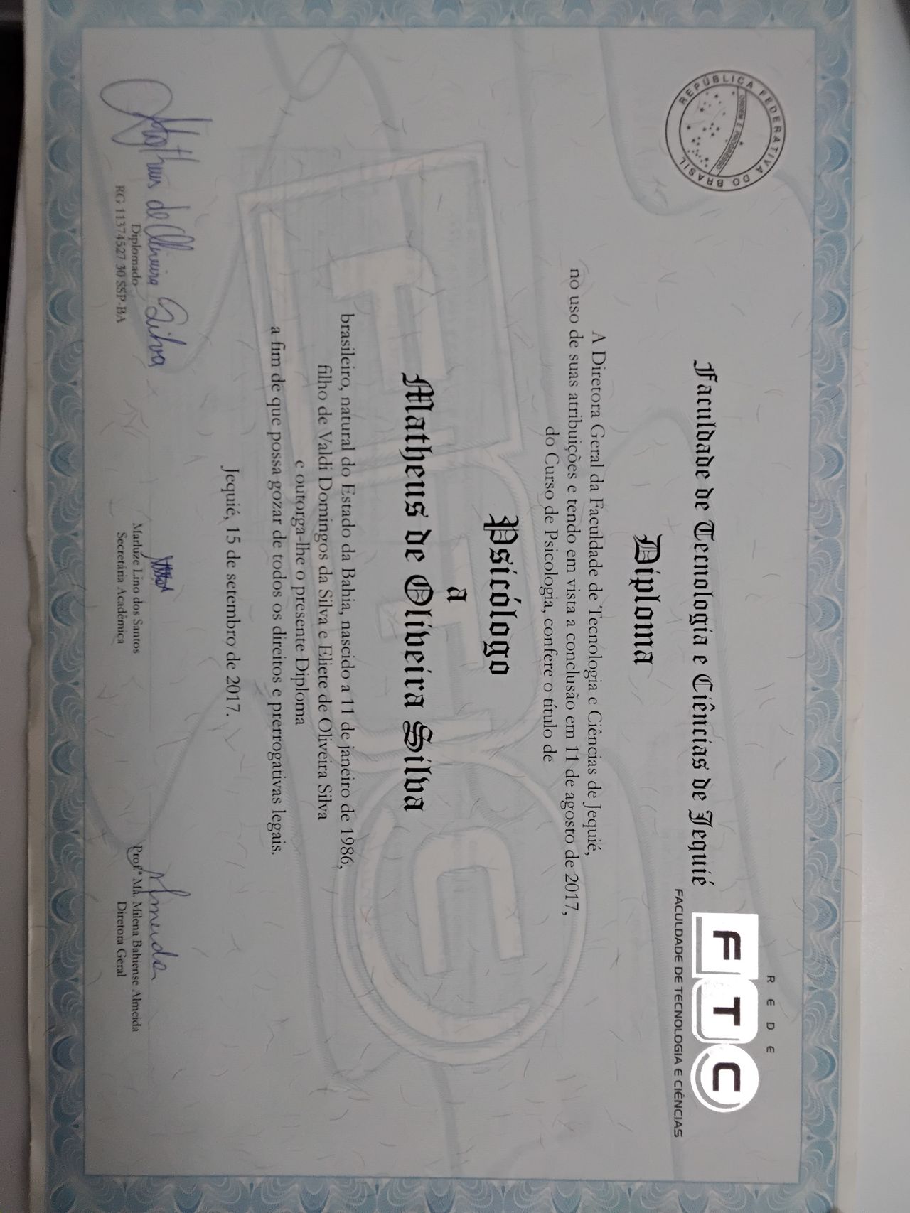 Sou graduado em psicologia pelo instituto mantenedor de educação superior da bahia, desde 2017. Desde o início da minha formação, busco compreender as pessoas de forma respeitosa, acolhedora e atenta às suas histórias de vida.