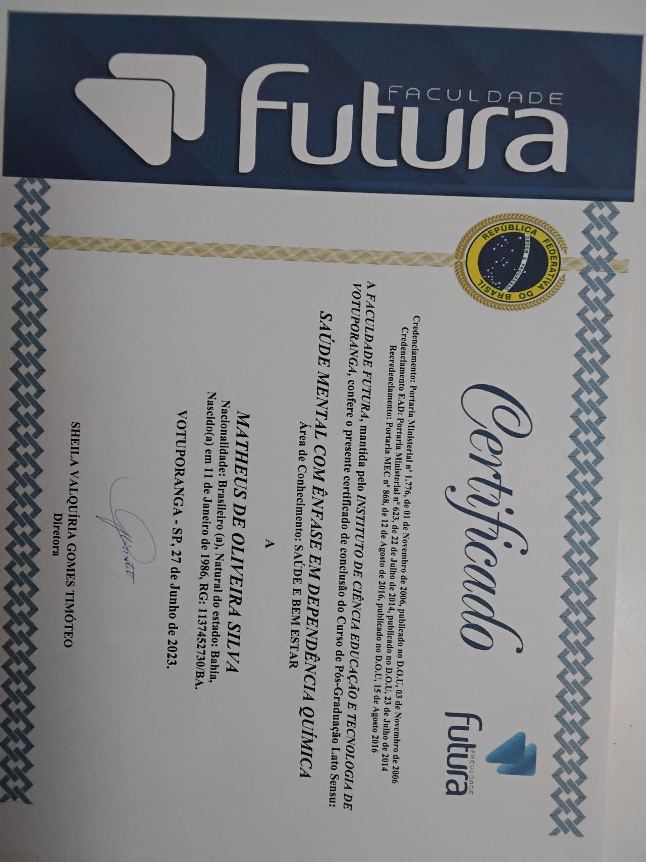 Possuo pós-graduação nas áreas de neuropsicologia, saúde mental e dependência, além de formação em docência do ensino superior. Esses estudos fortalecem minha prática clínica e meu compromisso com um atendimento ético, humano e baseado no cuidado.
