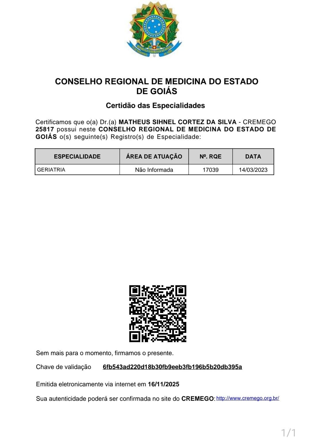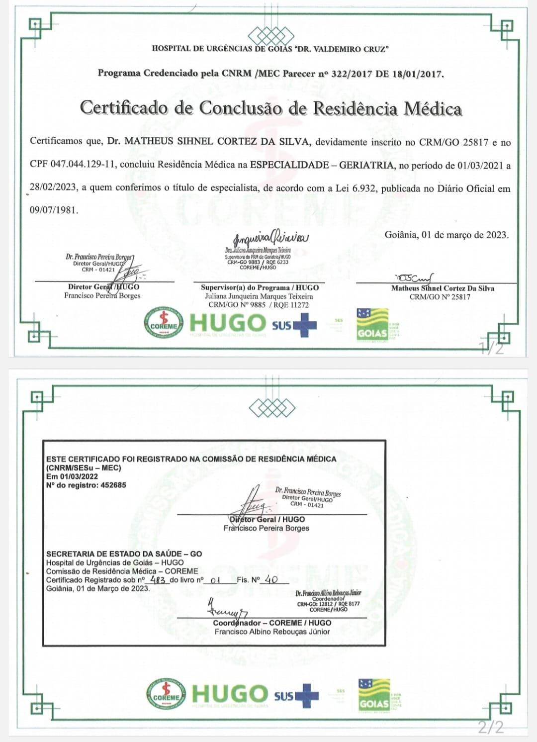 Número de registro: CRM GO 25817 - RQE Nº 17039 (Geriatria)