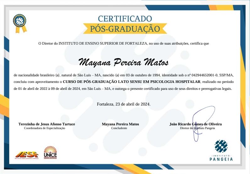 Sou Mayana Matos, psicóloga especializada em Terapia Cognitivo-Comportamental (TCC) e Neuropsicologia. Meu propósito é te auxiliar na superação de desafios emocionais, comportamentais e cognitivos, oferecendo um cuidado ético, humano e fundamentado na ciência.