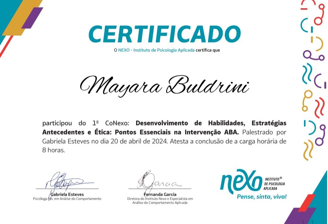 Cursos na área de autismo, aba, Terapia Cognitiva Comportamental e Psicofarmacologia.