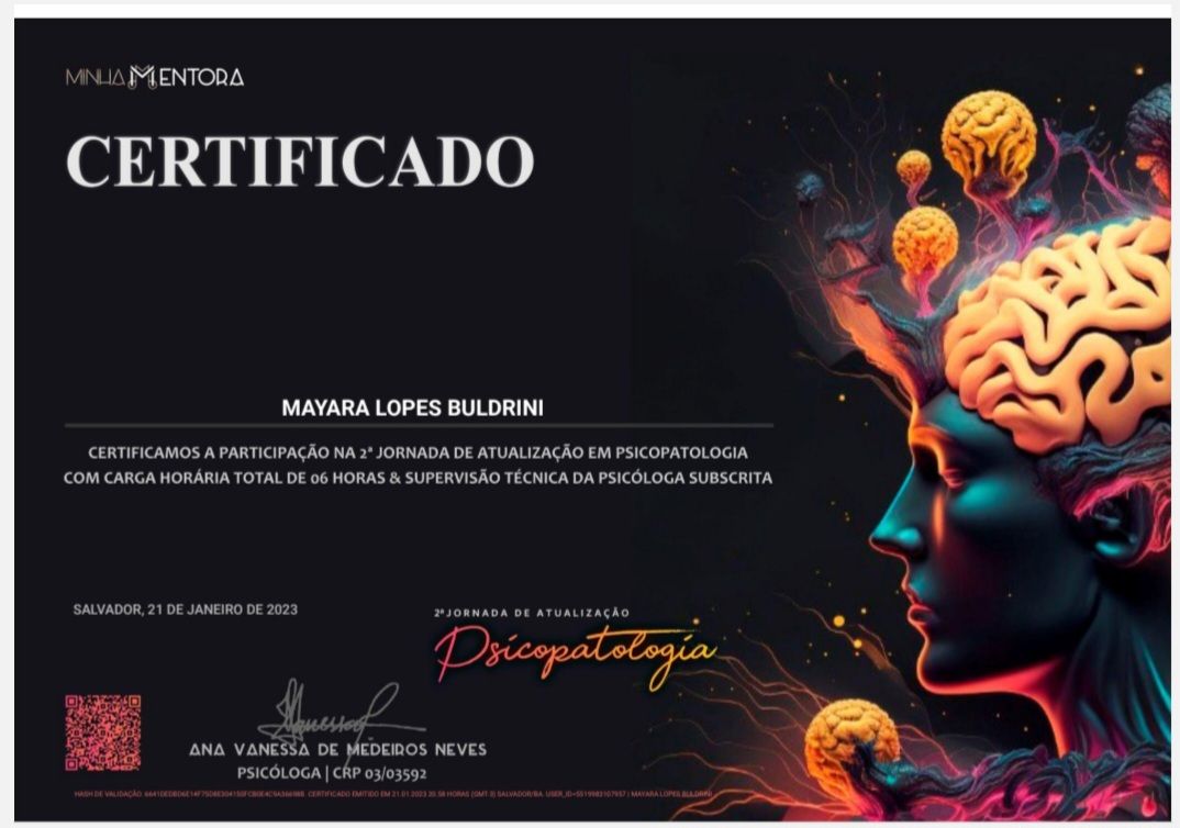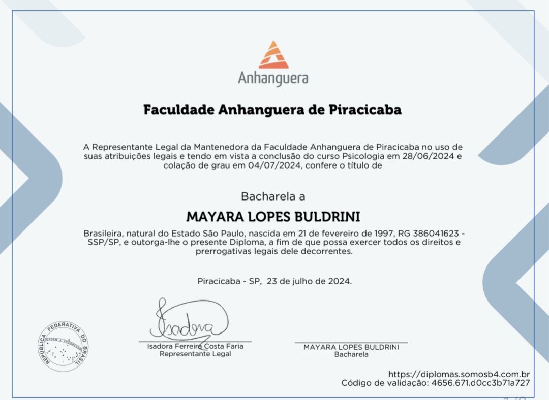 Olá, sou Mayara Buldrini, psicóloga formada pela Faculdade Anhanguera, com especialização em Psicopatologia: os fundamentos da clínica na saúde mental pela PUCRS e também em Saúde Mental, Psicopatologia e Atenção Psicossocial.