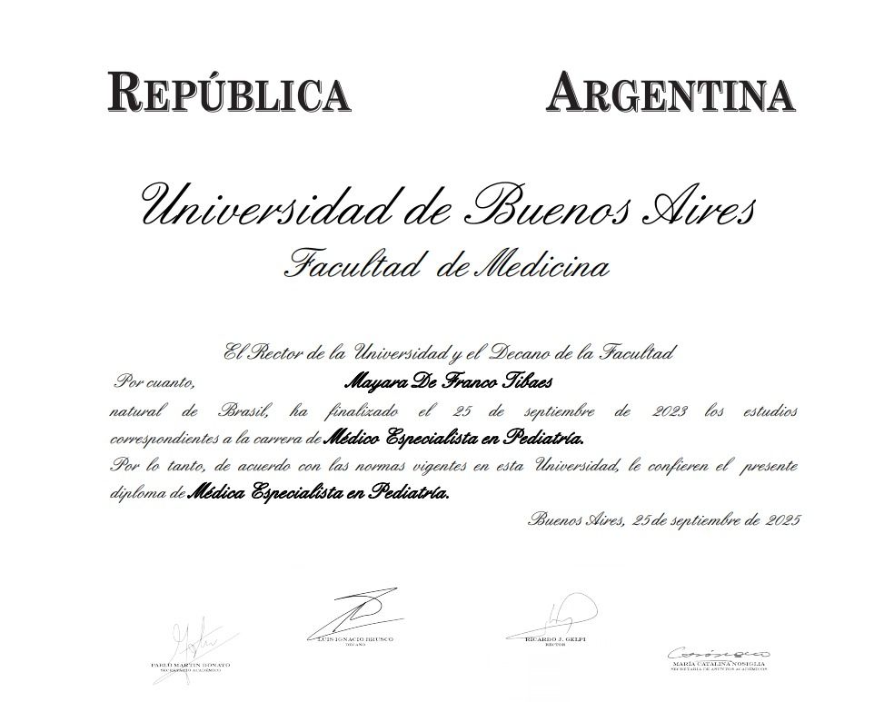 Quais são as principais especialidades de Mayara de Franco Tibaes?Mayara de Franco Tibaes é pediatra. Te mostramos alguns dos serviços oferecidos pelo especialista graças à sua trajetória e vasta experiência: Primeira consulta Pediatria, Consulta de puericultura (prevenção de doença, promoção de saúde e avaliação do crescimento e desenvolvimento), Consulta particular, Consulta pediátrica pré-natal, Check up, Apoio à amamentação, Consulta de retorno, Retorno de consultas Pediatria, Promoção da saúde, Teste do Olhinho.