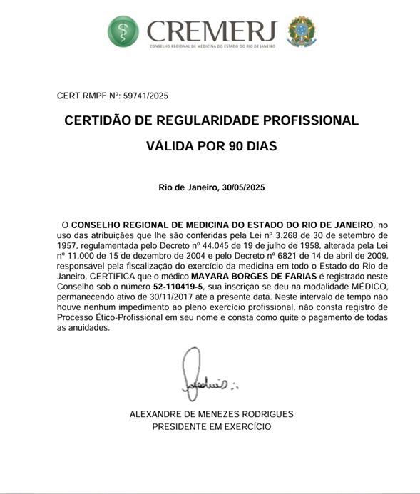 A Mayara é uma médica atenciosa e muito profissional. Na consulta me senti acolhida e confiante para iniciar uma nova fase e cuidar mais de mim. Não largo mais rsrs