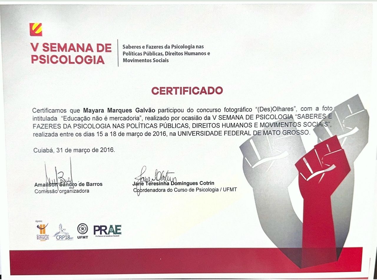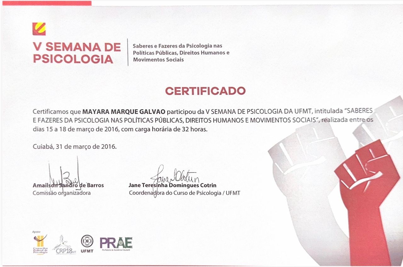 27 opiniõesOlá! Sou Mayara Marques Galvão, psicoterapeuta clínica com formação pela Universidade Federal de Mato Grosso (UFMT) desde 2017.