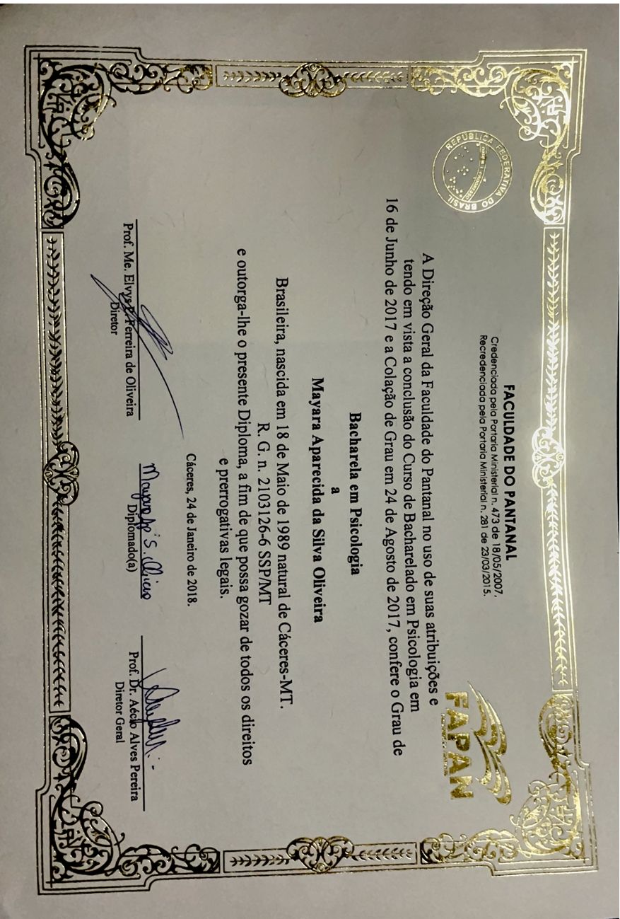 Quais são as principais especialidades de Mayara Oliveira?Mayara Oliveira é psicóloga. Te mostramos alguns dos serviços oferecidos pelo especialista graças à sua trajetória e vasta experiência: Primeira consulta psicologia, Teleconsulta, Consulta Psicologia.