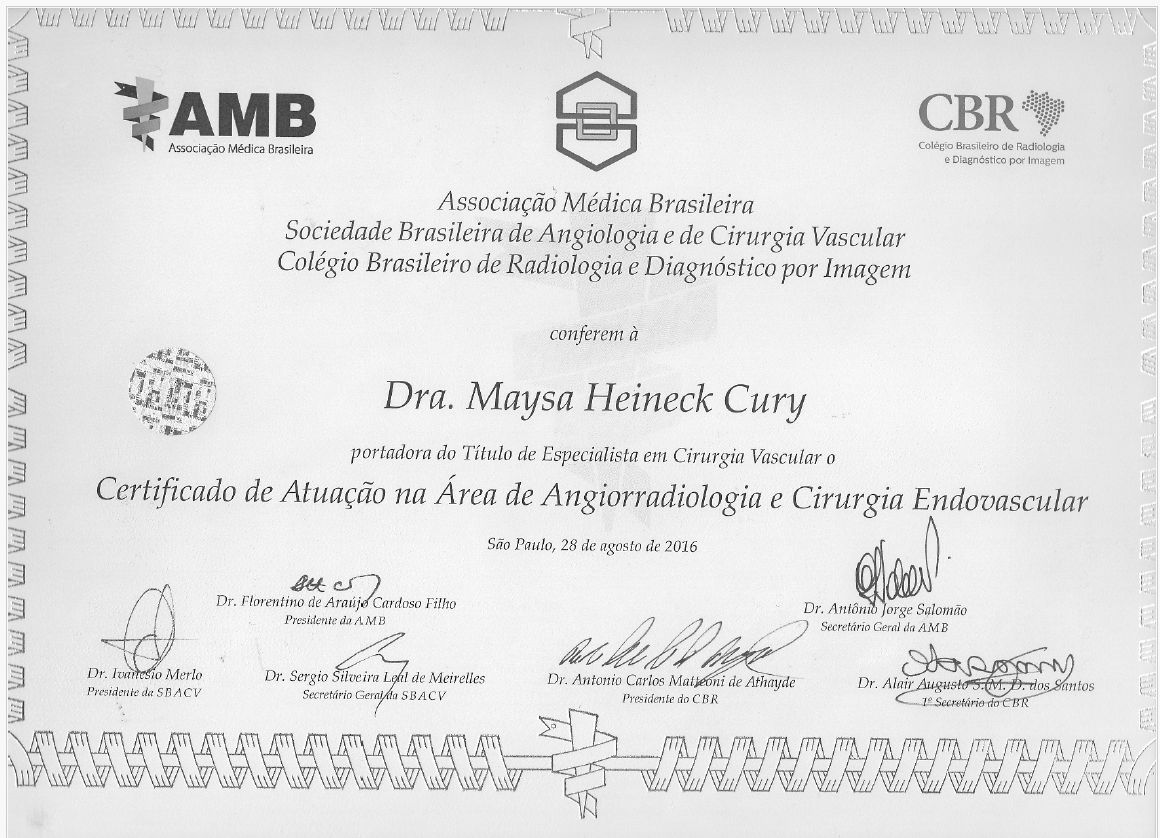 Título de Especialista em Angiorradiologia e Cirurgia Endovascular pela SBACV/AMB
