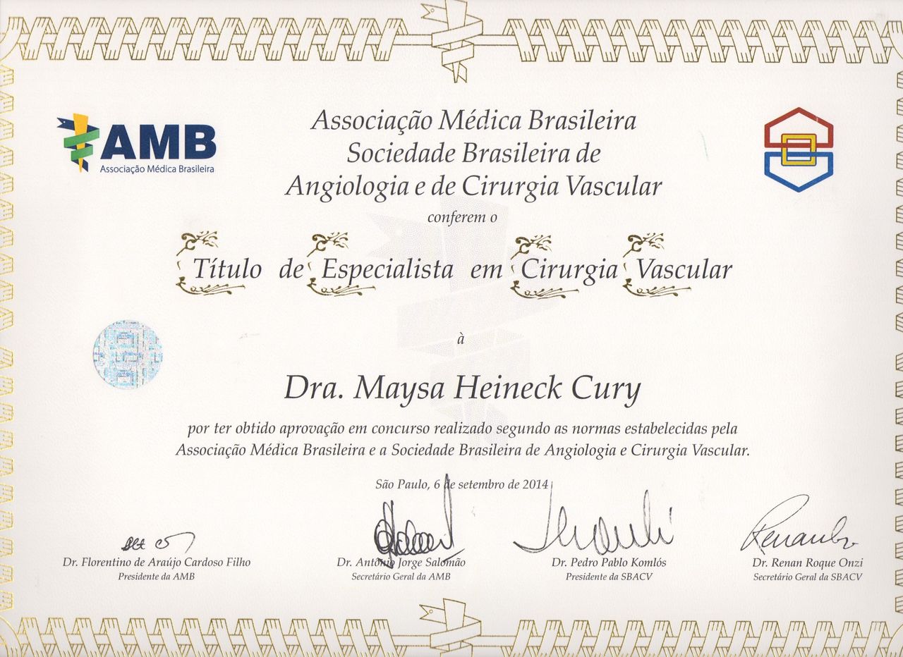 Título de Especialista em Cirurgia Vascular pela SBACV/AMB