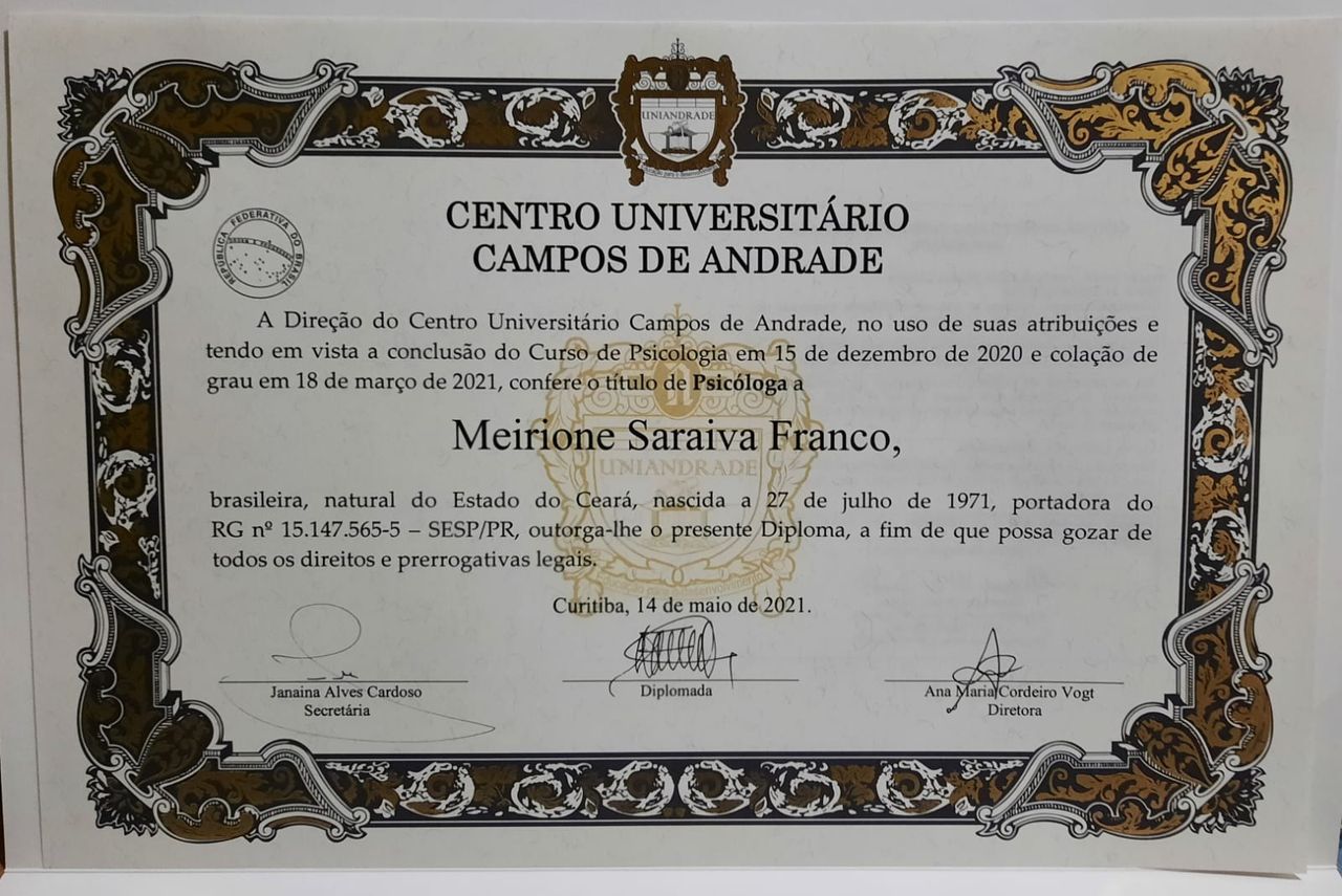 Graduada em Psicologia, UNIANDRADE-PR.