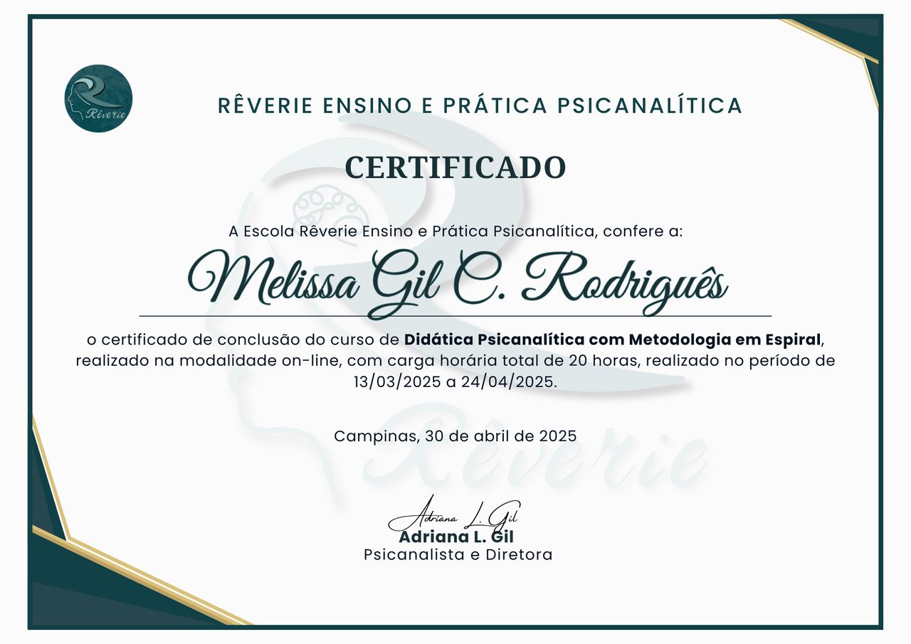 Agradecemos por compartilhar sua experiência. É uma alegria saber que o trabalho da psicanalista Melissa pôde favorecer novas leituras sobre sua história e seus movimentos internos. Na Rêverie, prezamos por um cuidado clínico ético, sensível e comprometido com a singularidade de cada sujeito. Seguimos à disposição para continuar oferecendo um espaço de reflexão e transformação.