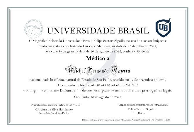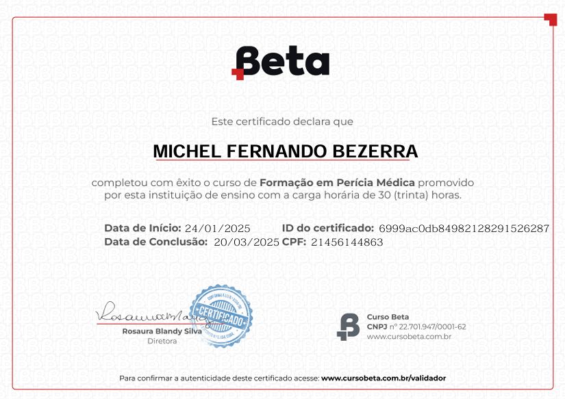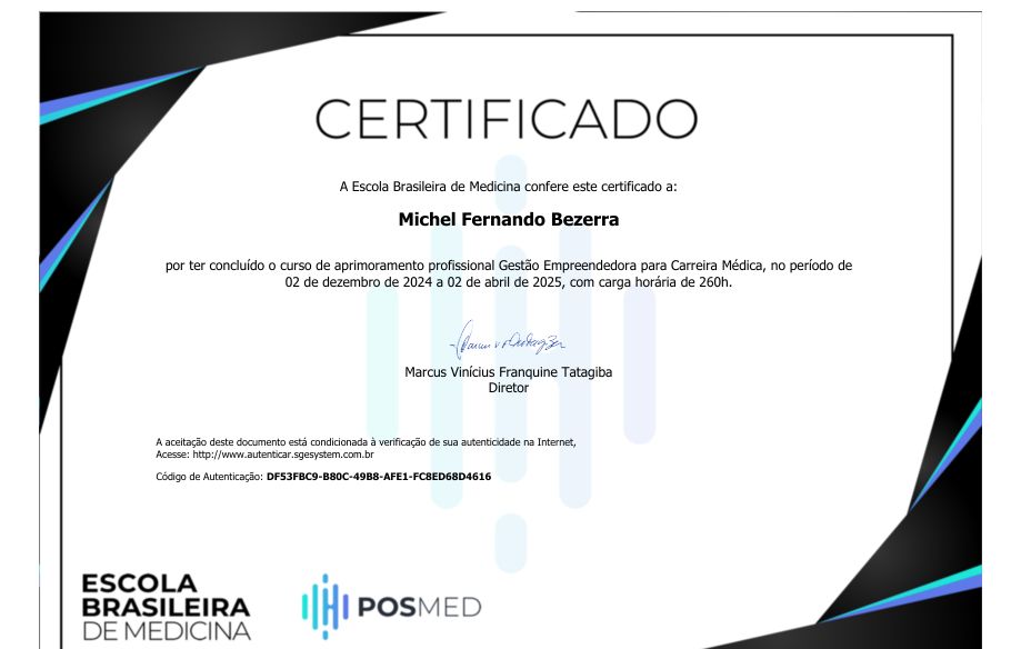 Olá, muito prazer. O meu nome é Michel Fernando Bezerra e sou o médico que vai acompanhá-lo.