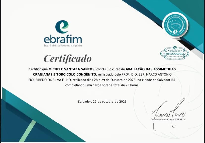 Com formação em Osteopatia Pediátrica Neonatal pelo Instituto Francisco Fajardo, pós-graduada em Terapia Manual e Postural – Centro Universitário de Maringá.