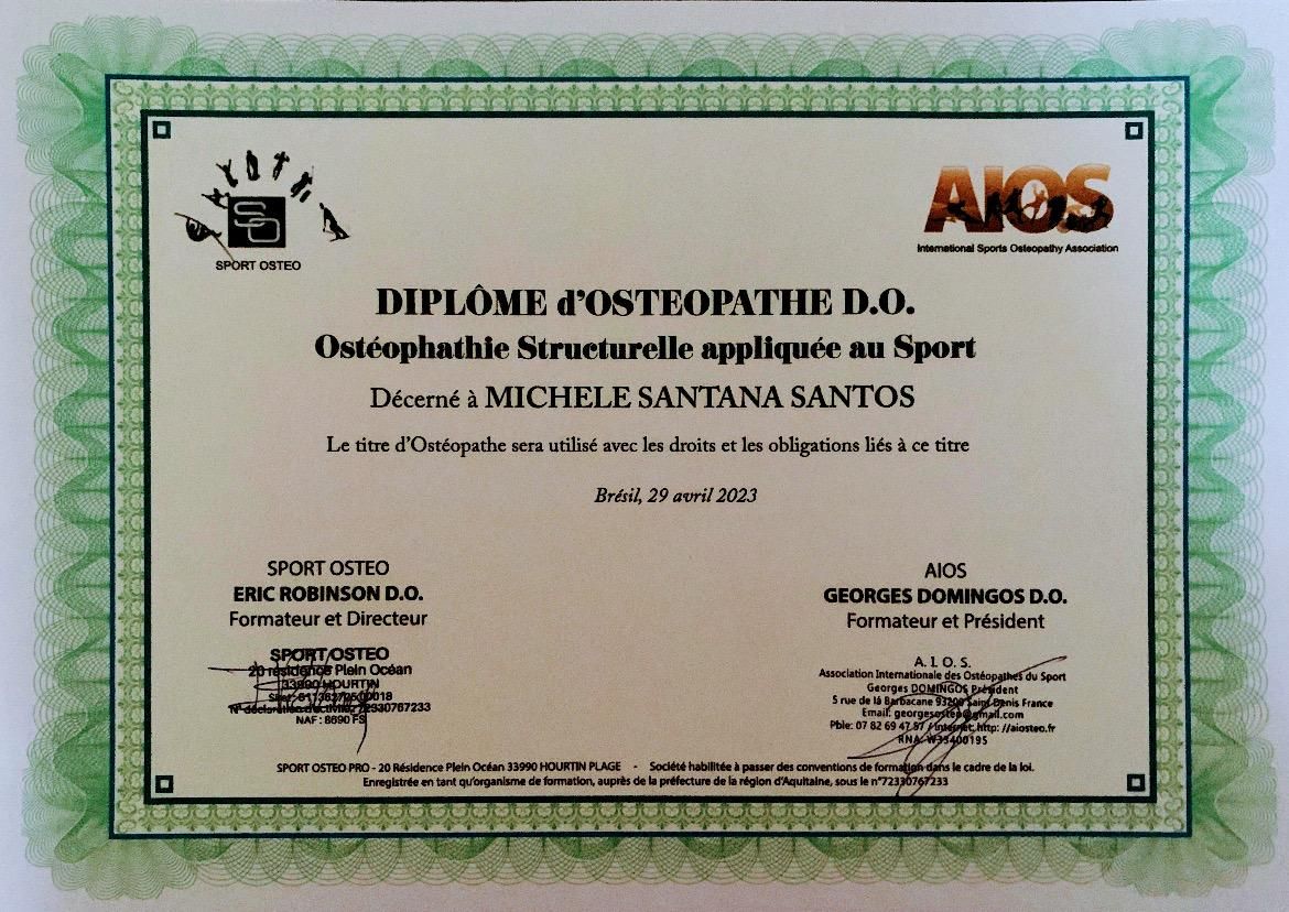 Osteopata pela EBRAFIM (Escola Brasileira de Fisioterapia Manipulativa), possui diplomação em Osteopatia (D.O) no Esporte – International Sports Osteopathy Association (AIOS).