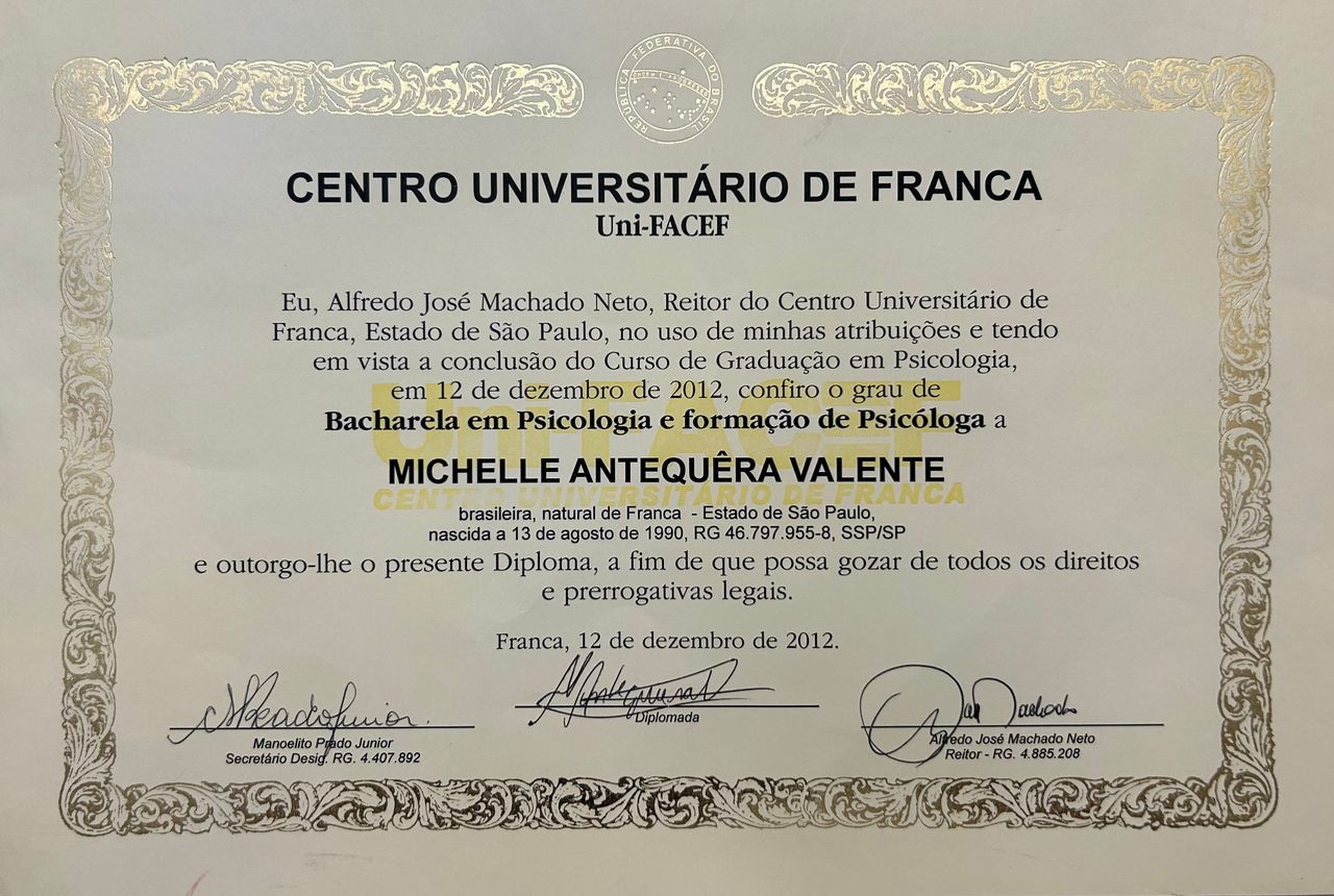É com muita satisfação e confiança que indico a Michelle• Consultório de Psicologia Franca • Consulta de psicologia online •