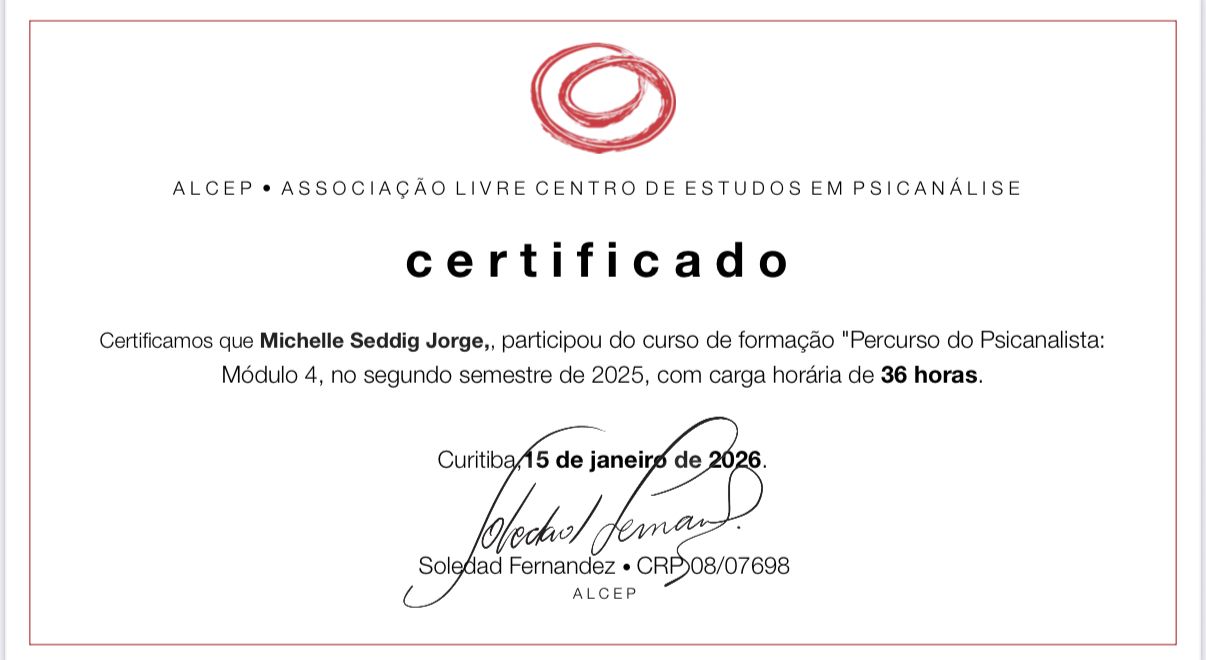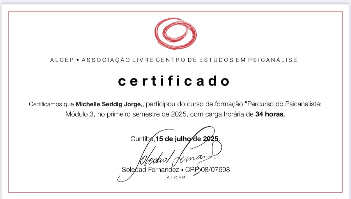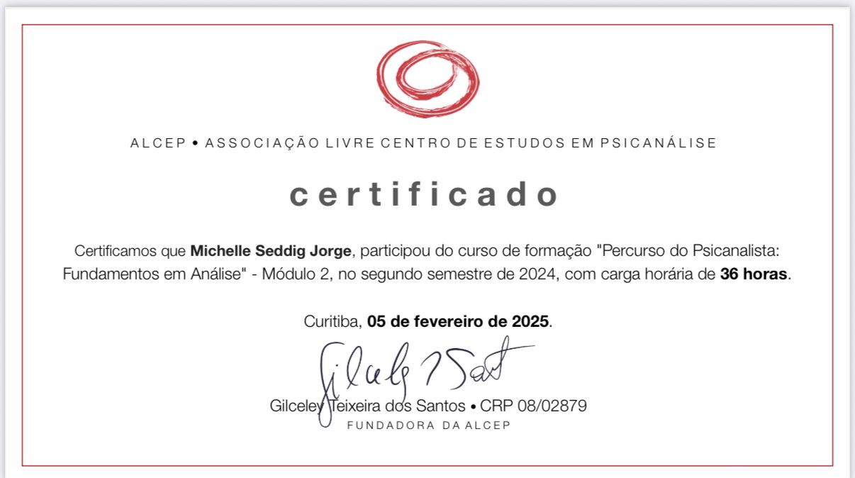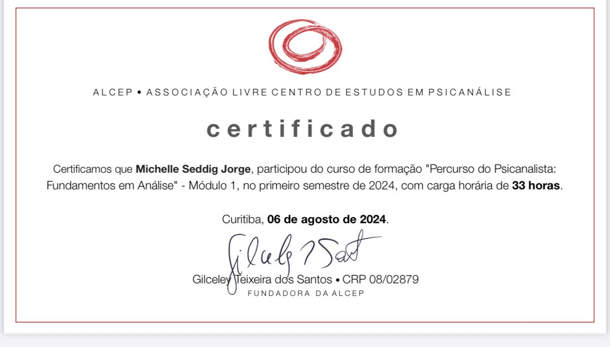 Psychoanalyst trained at Alcep Paraná, with prior professional experience in other fields, especially in art, communication, and education with degrees in psychoanalysis, graphic design and acting by RIT in NY and Indac in SP.