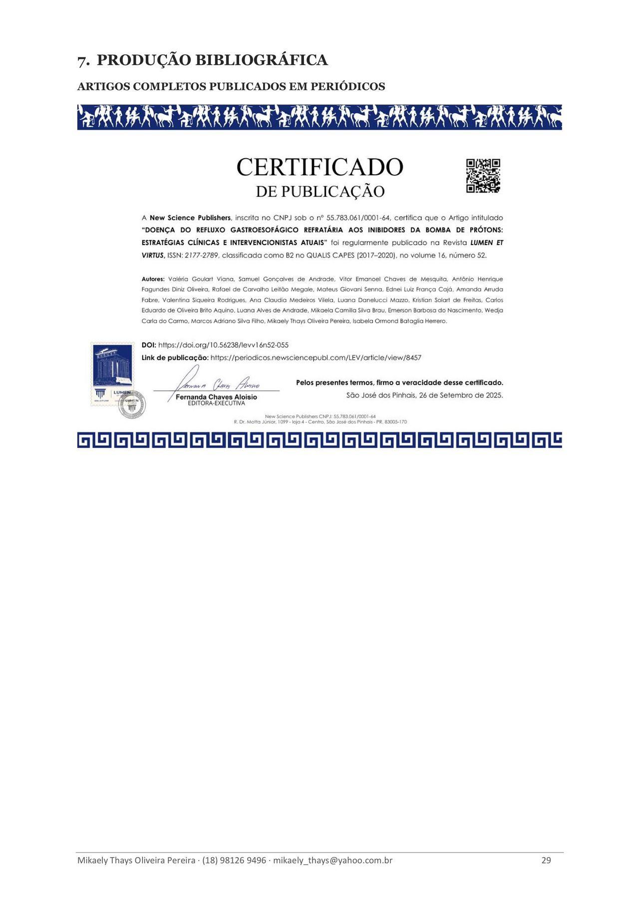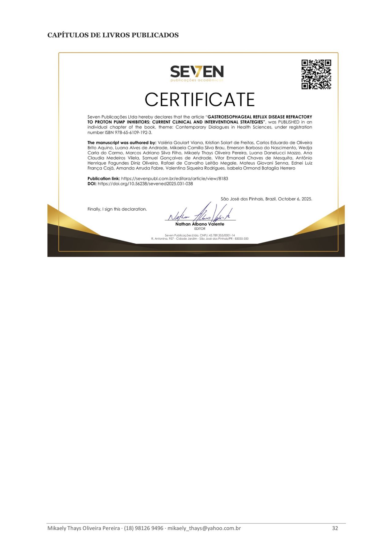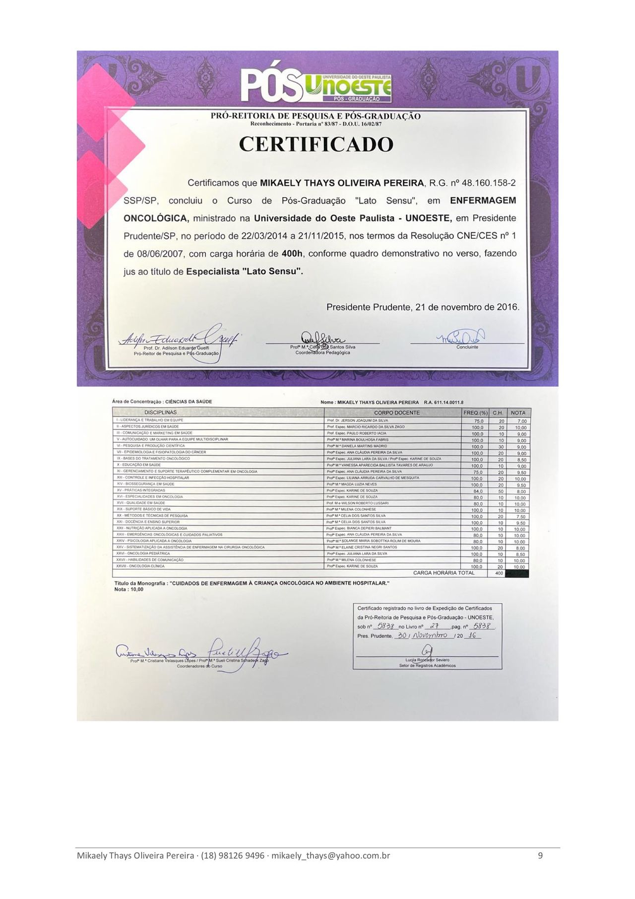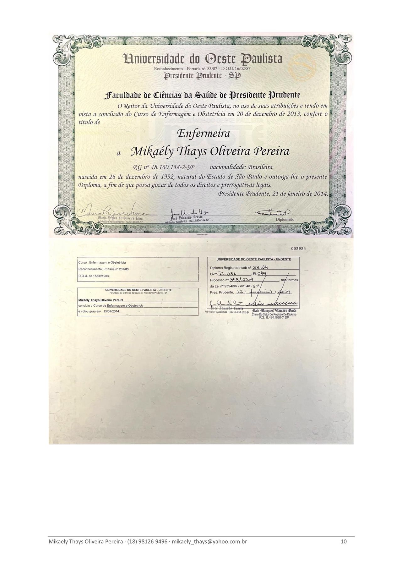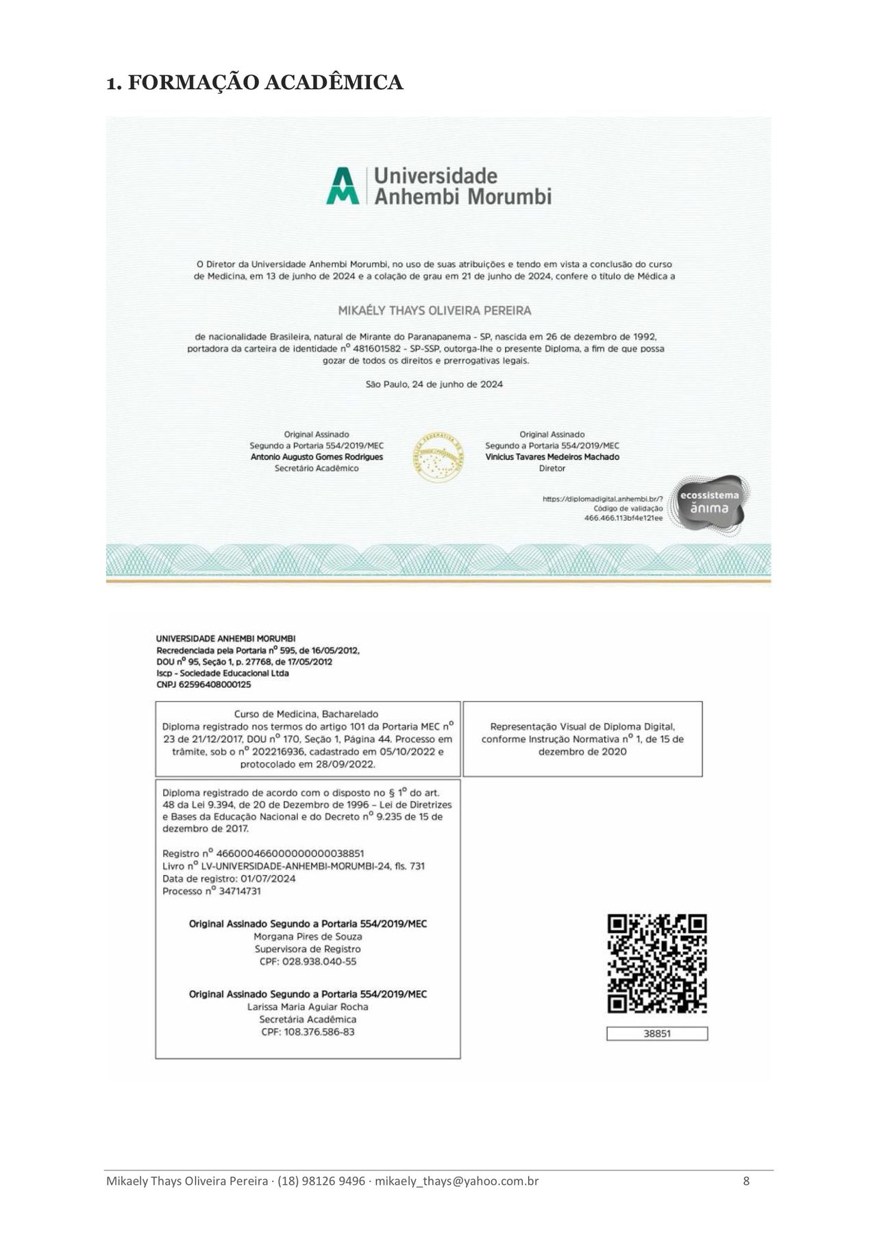 Formada em Medicina pela Universidade Anhembi Morumbi (2024) e em Enfermagem pela Universidade do Oeste Paulista – UNOESTE (2013), com pós-graduação em Enfermagem Oncológica (2015). Atualmente sou pós-graduanda em Medicina do Trabalho (IBCMED/Inspirali), com conclusão prevista para 2026.