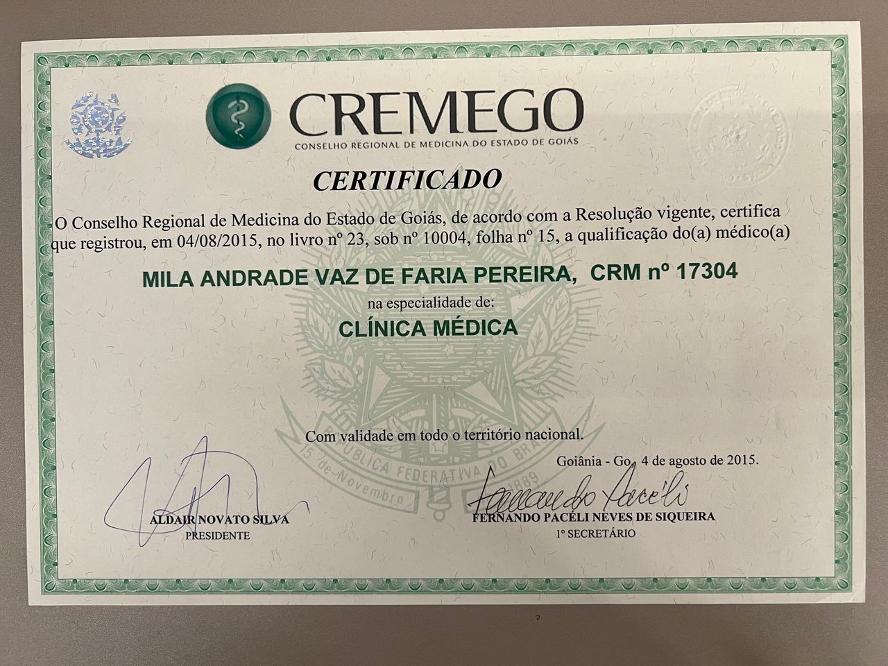 Número de registro: CRM GO 17304 RQE Nº: 10004