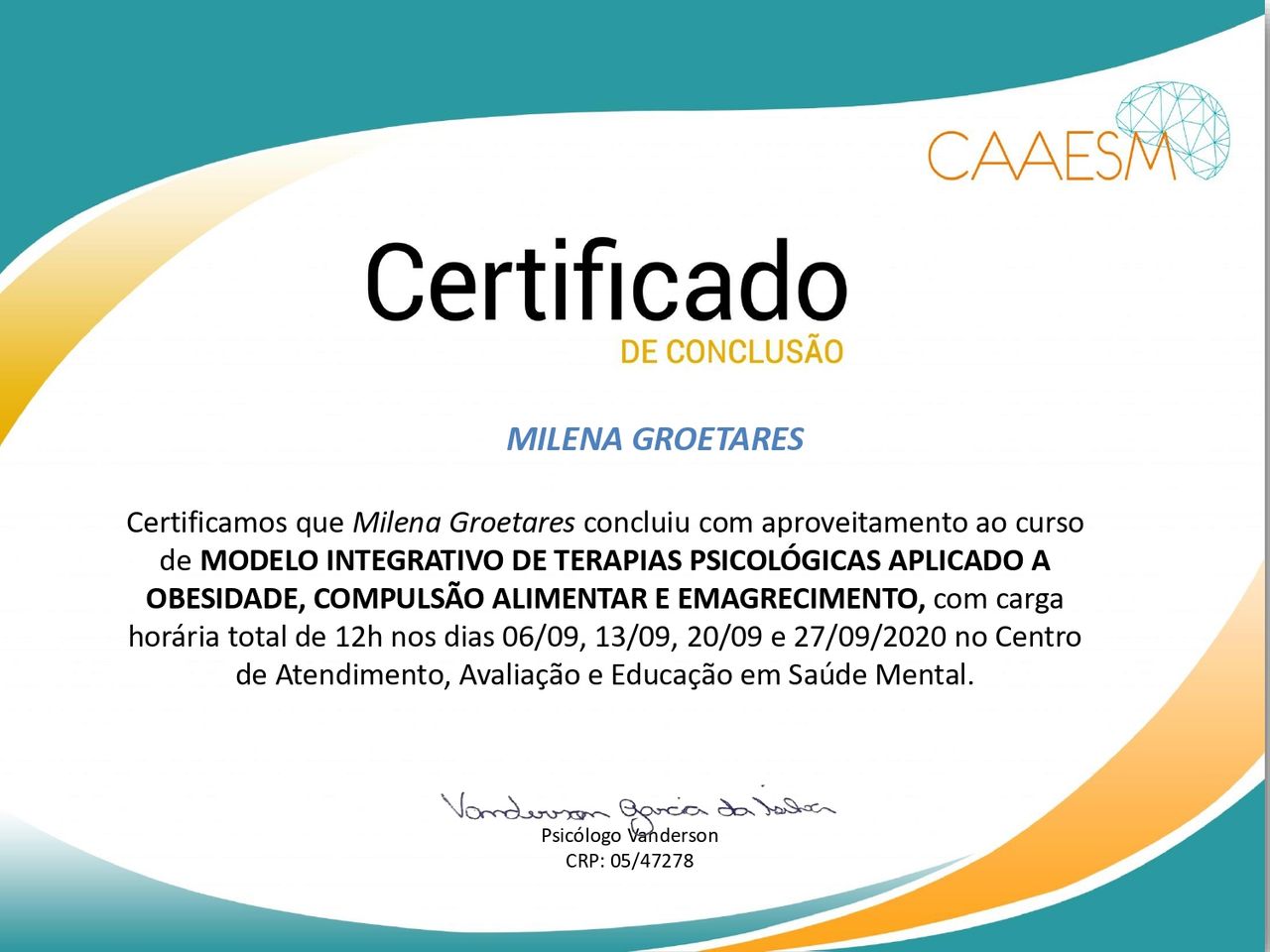 Número de registro: CRP RJ 67402