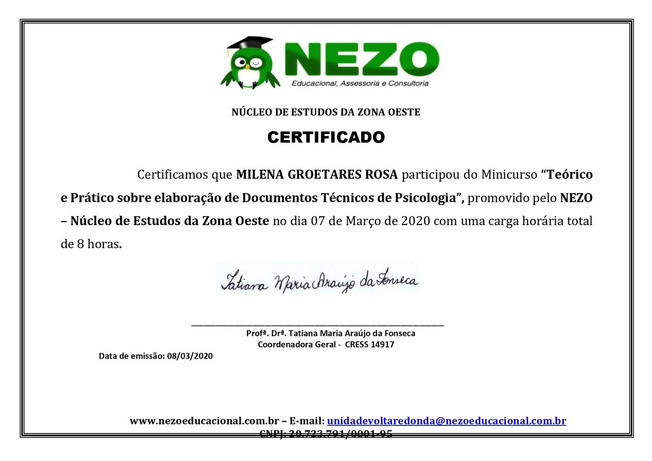 Sou psicóloga clínica e neuropsicóloga, mestranda em Neurologia e Neurociências na Universidade Federal Fluminense (UFF), pós-graduanda em Neurociências Aplicadas na Universidade Federal do Rio de Janeiro (UFRJ) e especialista em neurodesenvolvimento com 10 anos de experiência na área de desenvolvimento e aprendizagem. Além disso, sou professora universitária atuante nos cursos de Psicologia e Medicina, nos quais leciono disciplinas como Saúde Mental, Psicopatologia e Psicodiagnóstico. Minha primeira formação é em Pedagogia na Universidade Federal do Estado do Rio de Janeiro (UniRio), onde obtive experiência direta com práticas pedagógicas de inclusão. Atuo como neuropsicóloga em avaliação neuropsicológica em consultório particular, atendendo crianças, adolescentes e adultos.