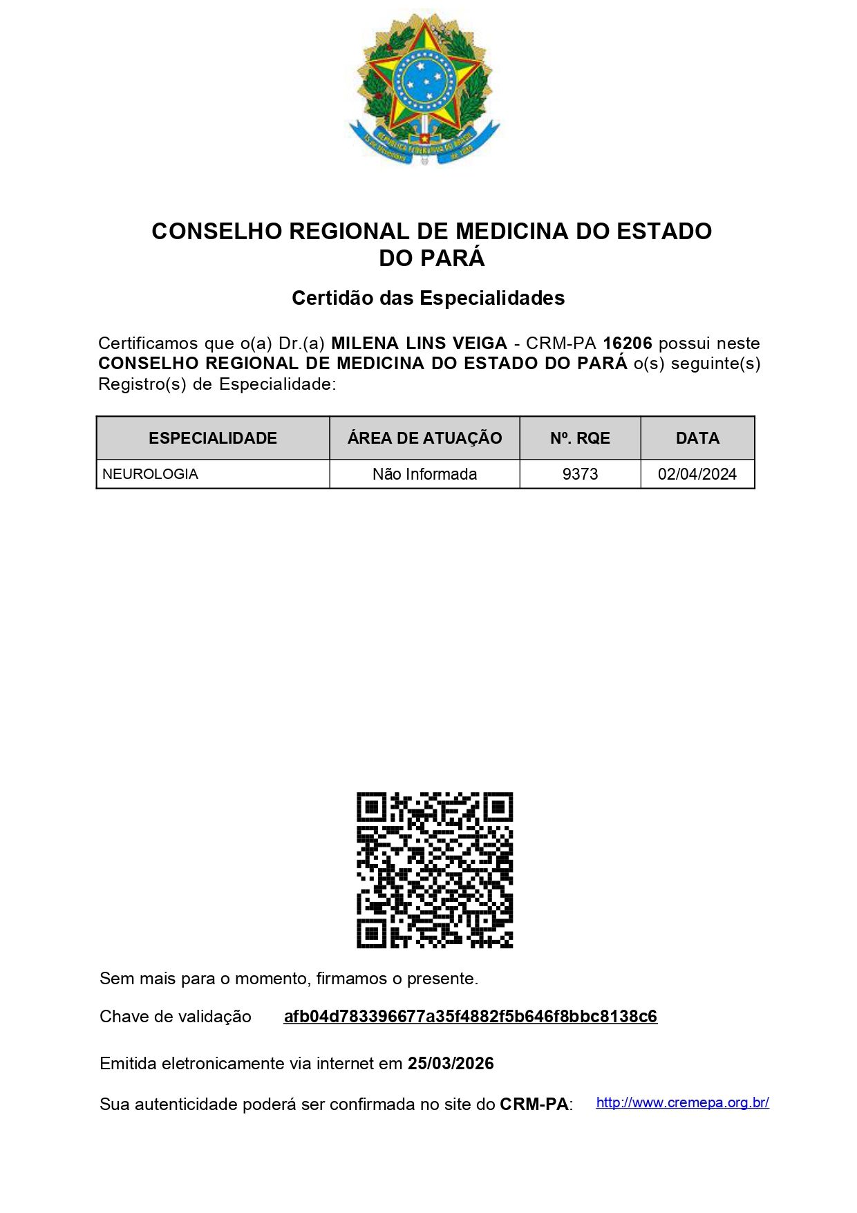 Número de registro: CRM PA 16206 RQE Nº: 9373