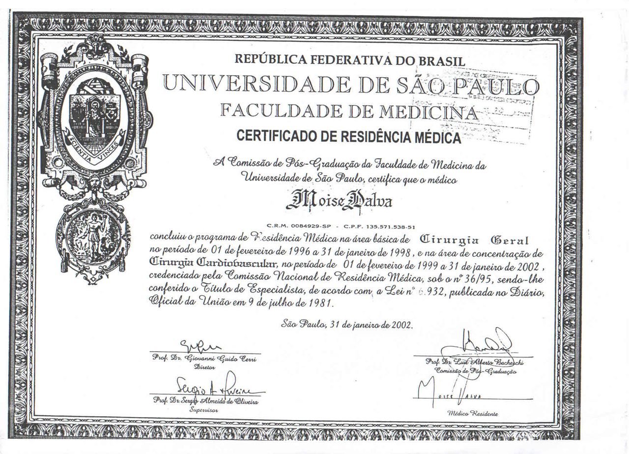Residência em Cirurgia Cardiovascular-InCor-2001