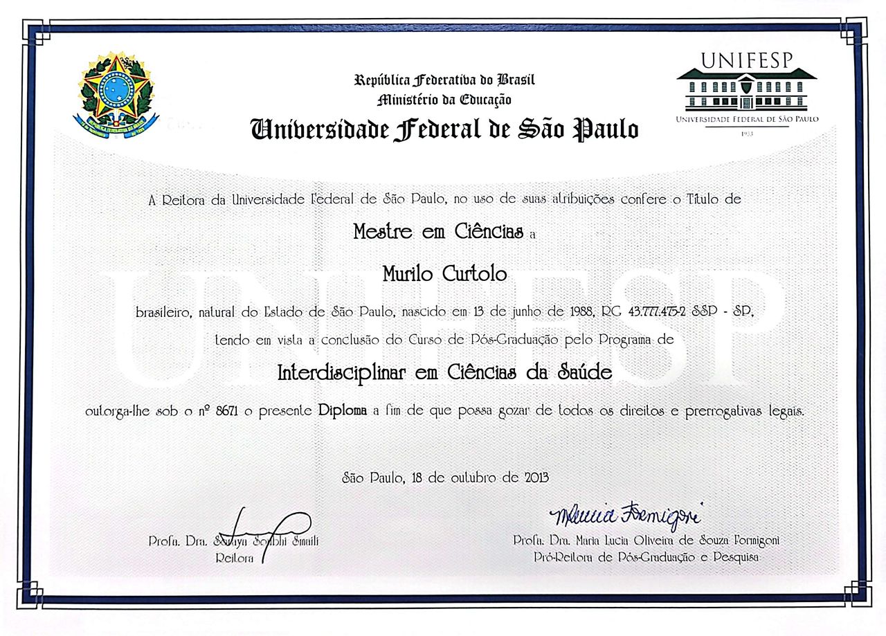 Mestre em Ciências da Saúde pela UNIFESP;