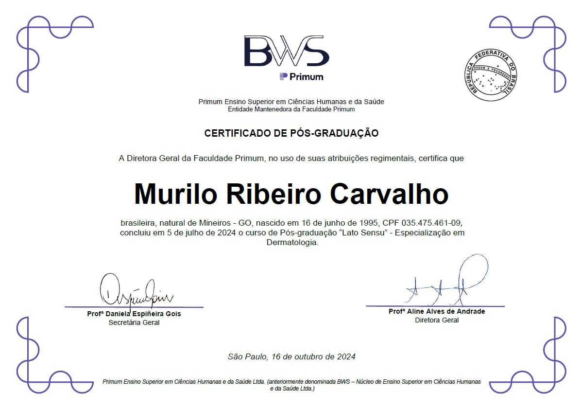 Quando poderia me consultar com Murilo Ribeiro Carvalho?Murilo Ribeiro Carvalho costuma ter horários disponíveis dentro da mesma semana ou para a semana seguinte. Verifique o calendário: você verá o primeiro horário disponível, atualizado em tempo real. Caso o horário sugerido não funcione para você, verifique outras datas. Agendar uma consulta é sempre imediato e gratuito.