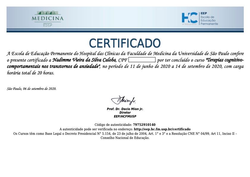 Dra Nadimme excelente profissional, sempre atenta às situações vividas no meu dia a dia. E contribui em muito para a minha melhora, seja com palavras, atitudes novas e/ou medicamentos.