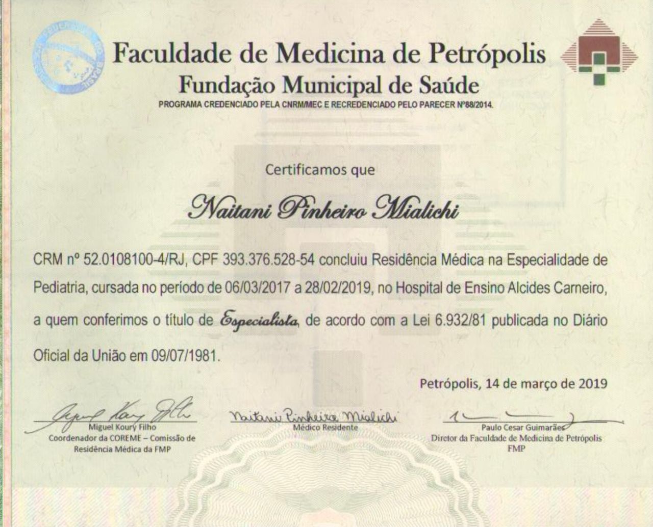 Número de registro: CRM RJ 108100 RQE 52499 RQE 53719