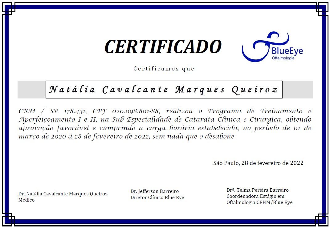 Quais são as principais especialidades de Natália Cavalcante?Natália Cavalcante é oftalmologista. Te mostramos alguns dos serviços oferecidos pelo especialista graças à sua trajetória e vasta experiência: Primeira consulta Oftalmologia, Análise e solicitação de exames, Tonometria, Curva de Pressão Intraocular, Epilação de cilios, Cirurgia Do Pterigio, Consulta Oftalmologia, Exérese de calazio, Cirurgia de catarata, Cirurgia Do Xantelasma.