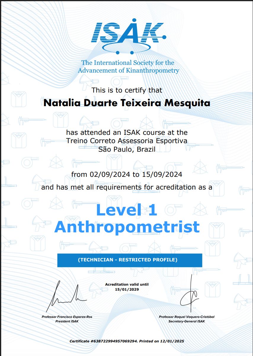 Sou nutricionista formada pelo Centro Universitário São Camilo, pós-graduanda em Nutrição Esportiva e Estética pela Plenitude Educação, e antropometrista certificada ISAK Nível 1. Atuo com nutrição aplicada a atletas de endurance e de alto rendimento, unindo teoria e prática para orientar decisões que realmente impactam a saúde e a performance.
