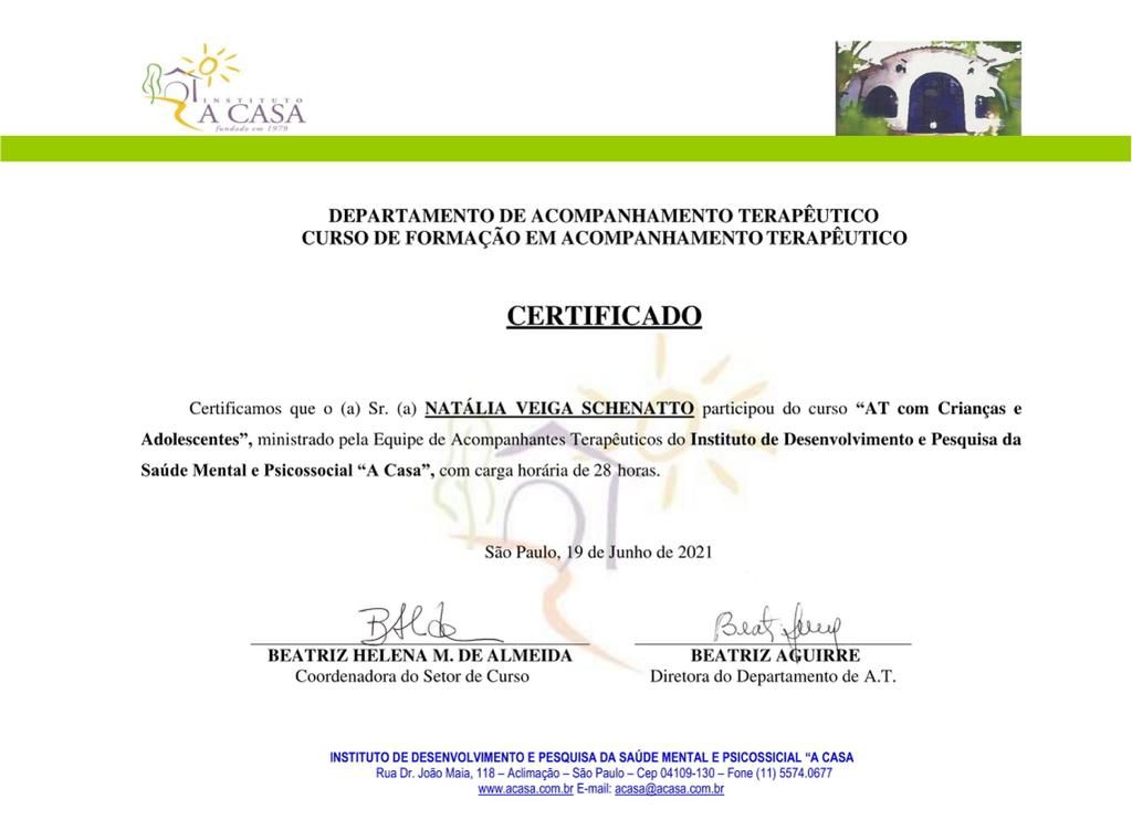 A formação em acompanhamento terapêutico pelo Instituto A Casa me proporcionou experiência com crianças e adolescentes no contexto escolar público e particular, tendo atuado enquanto monitora de práticas inclusivas e acompanhante terapêutica em espaços como a Escola Alef Peretz. Como estagiária, acompanhante terapêutica e depois preceptora, estive por dois anos no CAPS IJ (Centro de Atenção Psicossocial Infantojuvenil da Brasilândia). Circulei por trabalhos voluntários com direcionamento à psicoterapia individual, como no Centro de Referência a Diversidade Brunna Valin, com direcionamento ao público em vulnerabilidade social LGBTQIAP+.