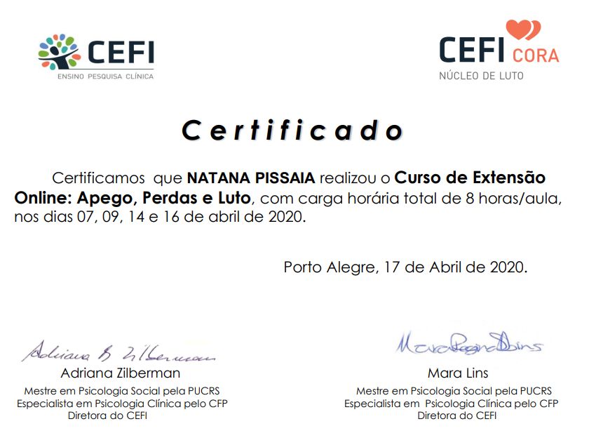 Quando poderia me consultar com Natana Pissaia?Natana Pissaia costuma ter horários disponíveis dentro da mesma semana ou para a semana seguinte. Verifique o calendário: você verá o primeiro horário disponível, atualizado em tempo real. Caso o horário sugerido não funcione para você, verifique outras datas. Agendar uma consulta é sempre imediato e gratuito.