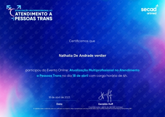 Em quais idiomas Nathália De Andrade Verdier atende?Nathália De Andrade Verdier atende em Português.