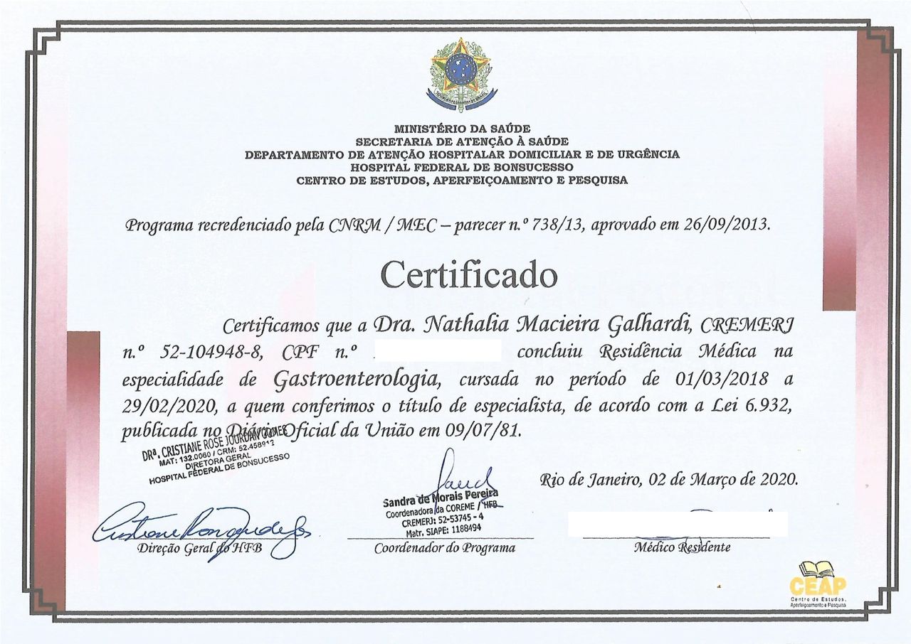 Número de registro: CRM 104948-8 RJ RQE Nº: 40521 (Hepatologia) RQE 33818 ( Gastroenterologia ) RQE 33817 ( Clínica Médica)