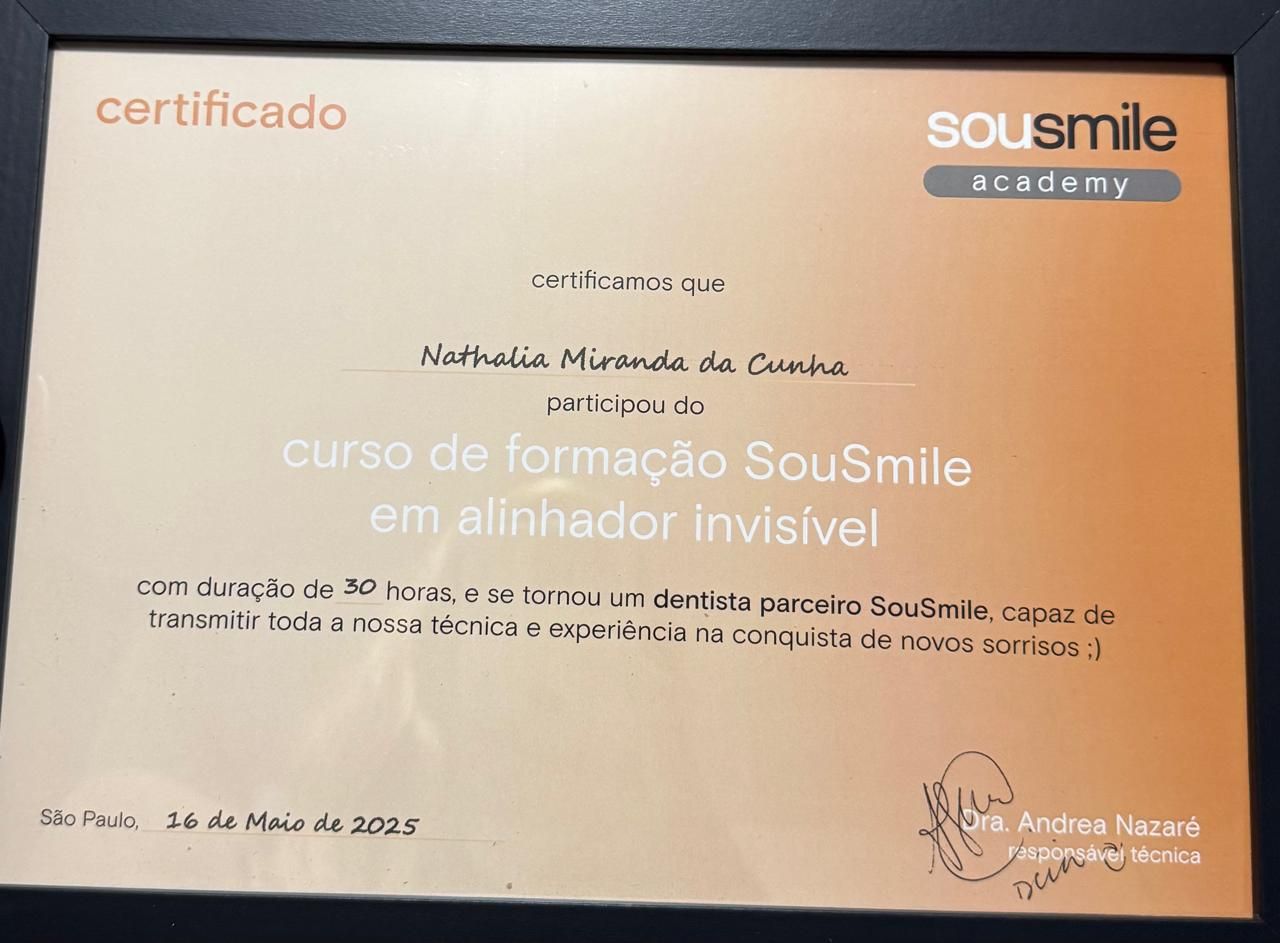 A Dra. Nathalia foi muito atenciosa. Gostei do tratamento que fiz e ela deu um mimo super fofo.