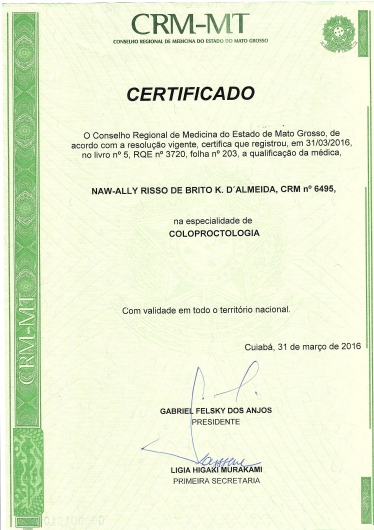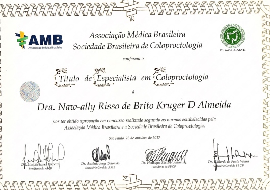 • Naw-Ally Risso de Brito Krüger D'Almeida - CLINICA DO CÓLON • Consulta em Coloproctologia •
