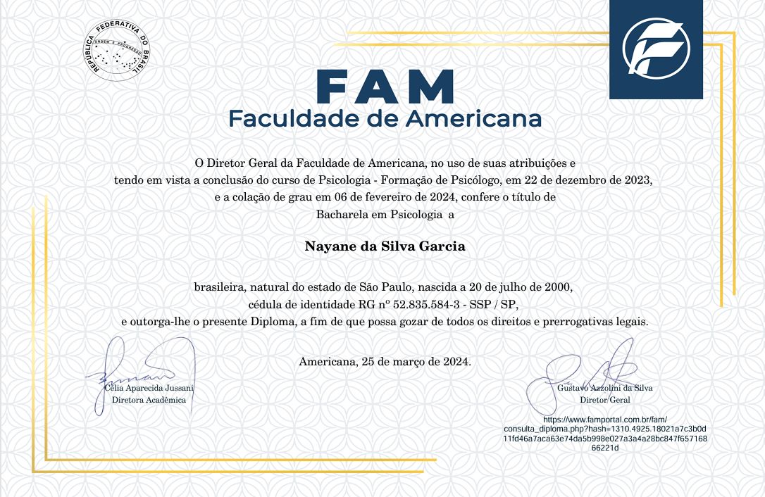 Olá, sou Nayane, psicóloga centrada na pessoa e apaixonada por promover o autoconhecimento e o crescimento pessoal. Formada em Psicologia, minha prática se concentra em facilitar o processo da terapia para o cliente em um ambiente terapêutico acolhedor e empático, onde cada indivíduo se sente ouvido e compreendido. Atuo tanto em atendimentos particulares online quanto em uma clínica multidisciplinar em Americana. Essas experiências têm enriquecido minha prática e me permitido desenvolver uma abordagem inclusiva e holística, sempre centrada nas necessidades e potencialidades de cada indivíduo.