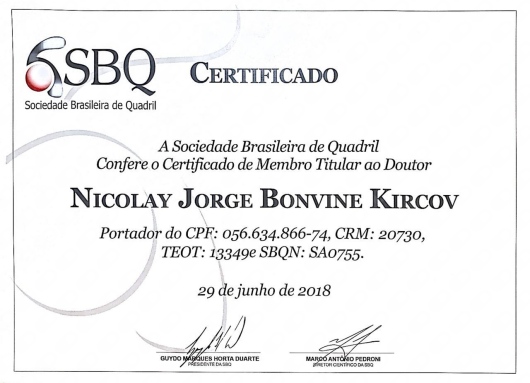 Quais são as principais especialidades de Nicolay Kircov?Nicolay Kircov é ortopedista - traumatologista. Te mostramos alguns dos serviços oferecidos pelo especialista graças à sua trajetória e vasta experiência: Consulta em cirurgia do quadril, Densitometria óssea, Cirurgia do quadril, Infiltração articular com ácido hialurônico, Sessão de terapia por ondas de choque, Microneurolise, Infiltração, Infiltração anestésica com corticoide em tenossinovites, Bloqueio de nervo periférico, Curativos.