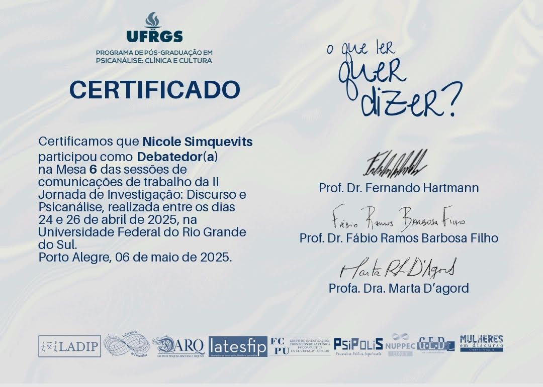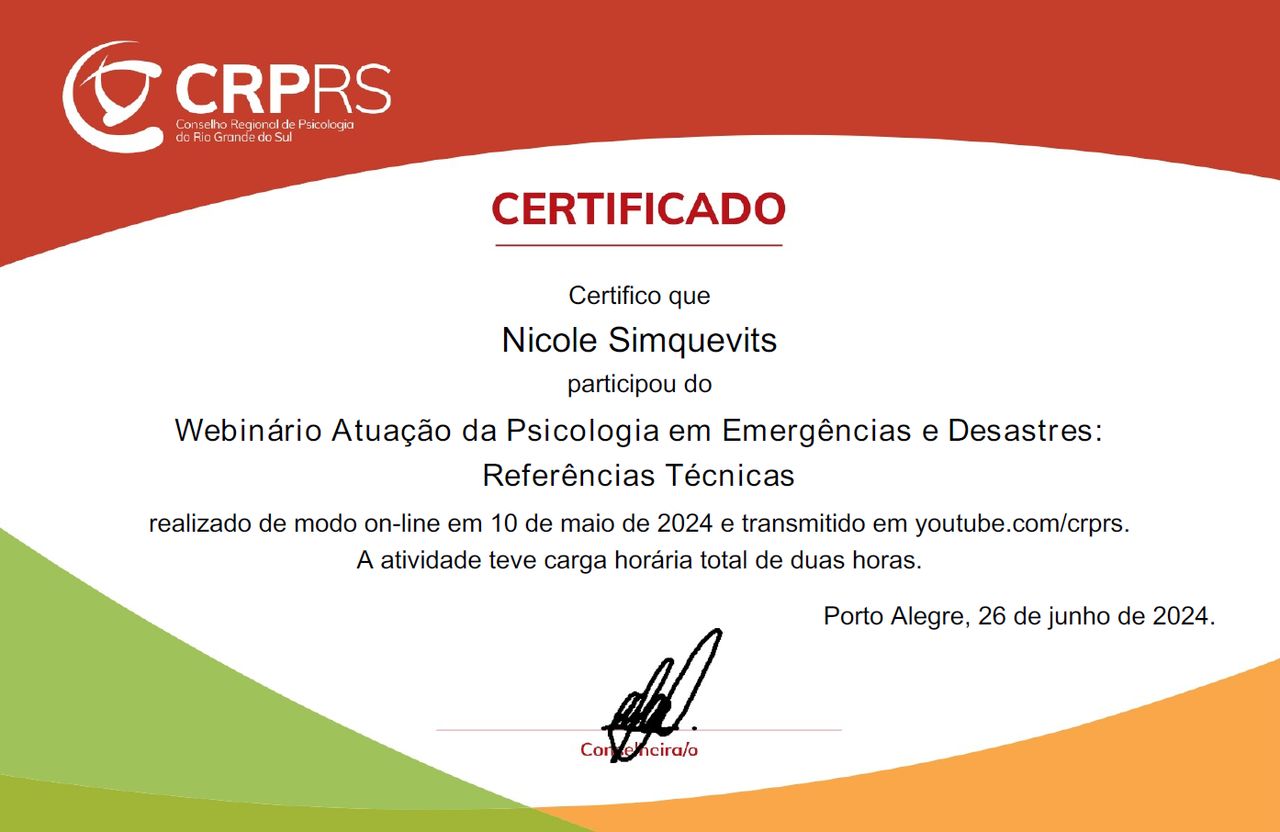 Em quais idiomas Nicole Simquevits atende?Nicole Simquevits atende em Português.