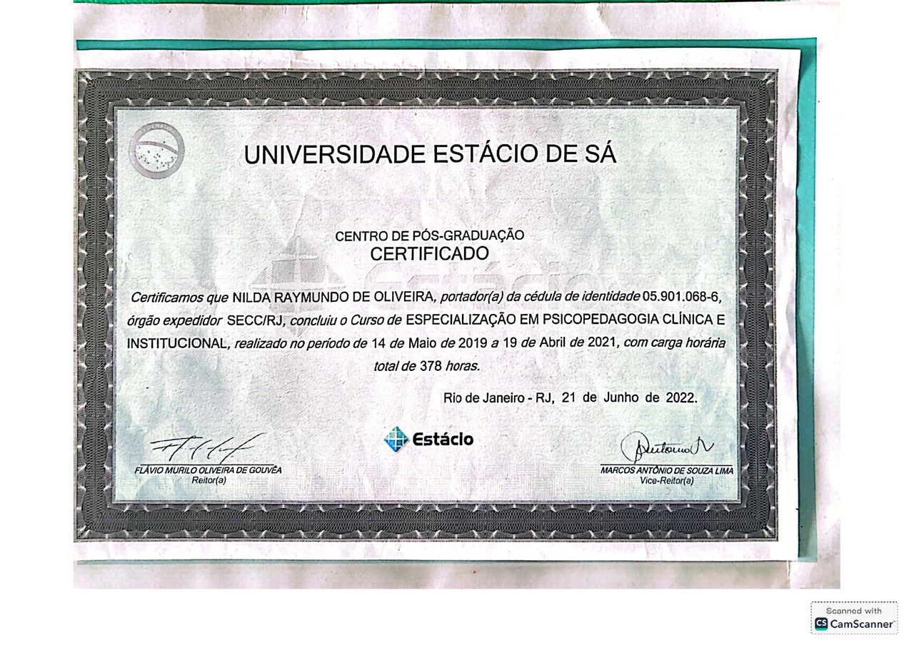 Quais são as principais especialidades de Nilda Raymundo de Oliveira ?Nilda Raymundo de Oliveira é psicopedagoga. Te mostramos alguns dos serviços oferecidos pelo especialista graças à sua trajetória e vasta experiência: Primeira consulta Psicopedagogia, Teleconsulta, Consulta Psicopedagogia, Psicoterapia, Avaliação de transtorno de TDAH.