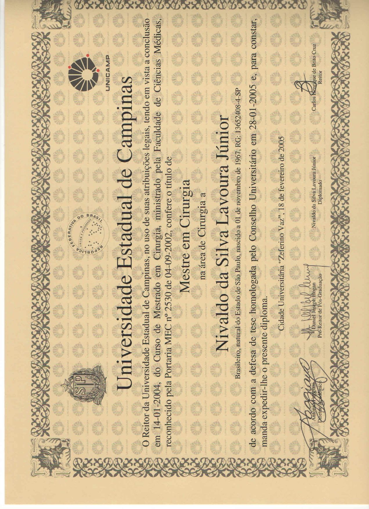 Pós -graduação Sensu Stricto: Mestrado e Doutorado (2008 a 2012) pelo Departamento de Cirurgia, na área de Concentração em Urologia. Área de Interesse: Hipertrofia Benigna da Próstata, Câncer de Próstata, Incontinência Urinária. Cirurgias Minimamente invasiva: Laparoscopia, Robótica e Laser. MBA: em Gestão em Saúde pela FGV.