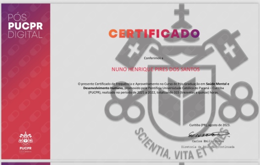 Quais são as principais especialidades de Nuno Santos?Nuno Santos é psiquiatra. Te mostramos alguns dos serviços oferecidos pelo especialista graças à sua trajetória e vasta experiência: Teleconsulta.