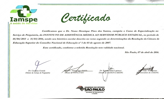 O Dr Nuno é excelente. Atencioso, respeitoso, empático e preciso. Recomendo muito. Infelizmente deixou de atender no Instituto de Psiquiatria Paulista, desde então nunca encontrei um psiquiatra tão bom quanto ele.