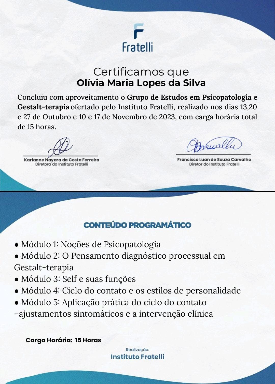 A Olivia tem sido um grande apoio para mim nos últimos meses. Estou muito grato pelas nossas sessões, pois ela tem me ouvido com atenção e carinho, o que tem sido incrivelmente útil para mim.