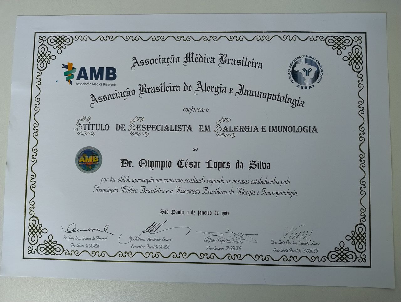 Quais são as principais especialidades de Olympio Cesar Lopes da Silva?Olympio Cesar Lopes da Silva é alergista, pediatra. Te mostramos alguns dos serviços oferecidos pelo especialista graças à sua trajetória e vasta experiência: Primeira consulta Alergia e Imunologia, Infiltração de substâncias em cavidade sinovial (articulação), Consulta alergia e imunologia, Teste para alergia respiratória, Teste cutâneo para latex, Tratamento de asma, Teste de sensibilidade de alergias de pele, Imunoterapia no tratamento de alergias a gato, Teste cutâneo para alimentos, Tratamento de alergia alimentar.